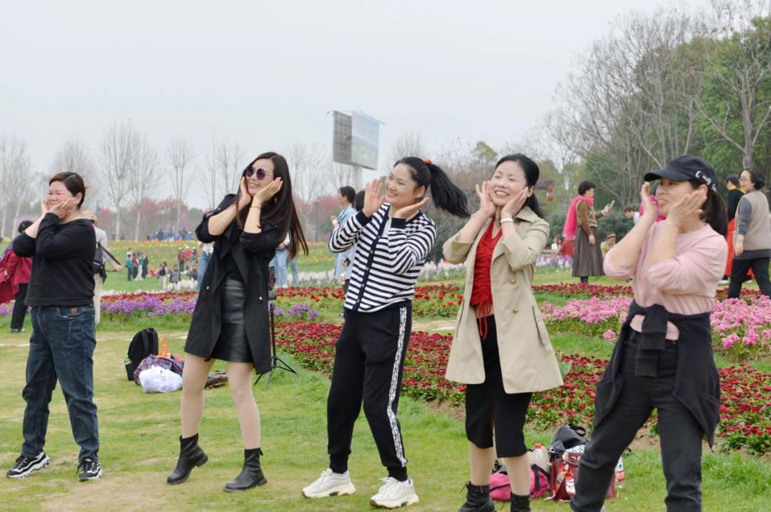 伴隨徐徐春風(fēng),“娘子軍”踏上了旅程。大巴上,大家一起玩游戲,唱車載KTV,一路洋溢著歡聲笑語,轉(zhuǎn)眼便抵達(dá)第一站——后官湖國家濕地公園。