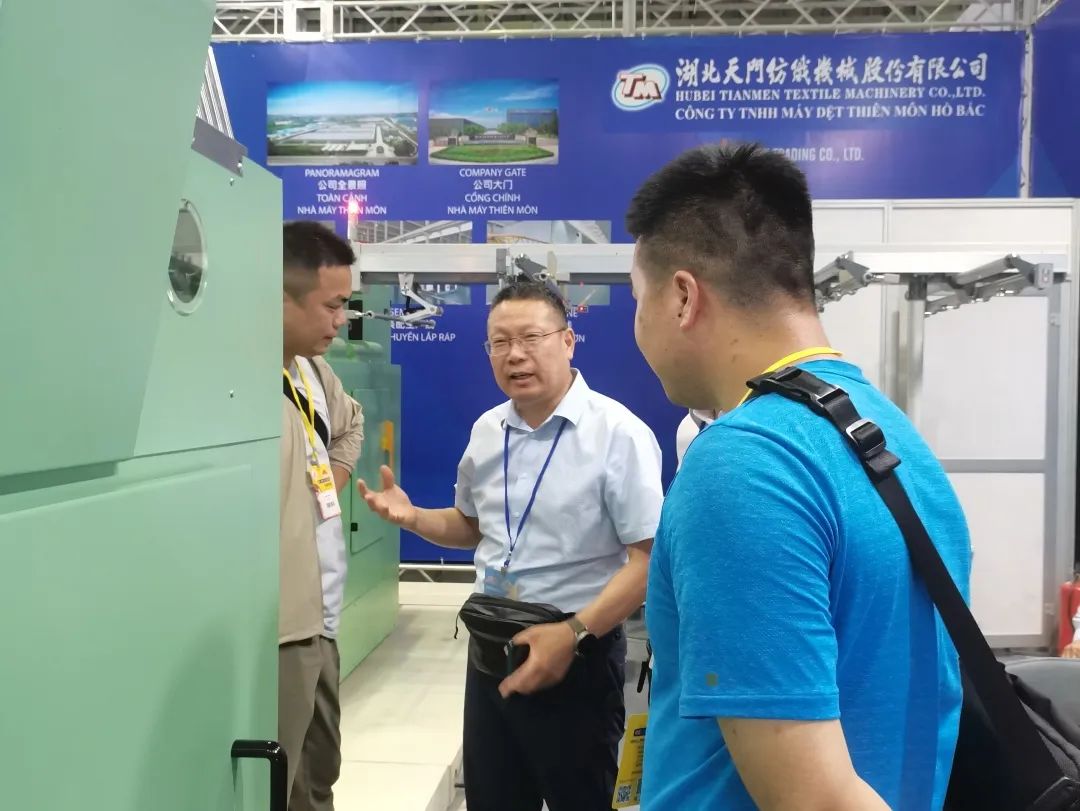 開展第一天,我司展位A 1F-13便吸引了眾多客戶,來自越南魯泰紡織、臺(tái)化紡織、南定紡織、裕綸紡織等企業(yè)人士紛紛蒞臨現(xiàn)場(chǎng)。通過深入了解,大家對(duì)我司T1系列產(chǎn)品給予了很高的評(píng)價(jià)。
