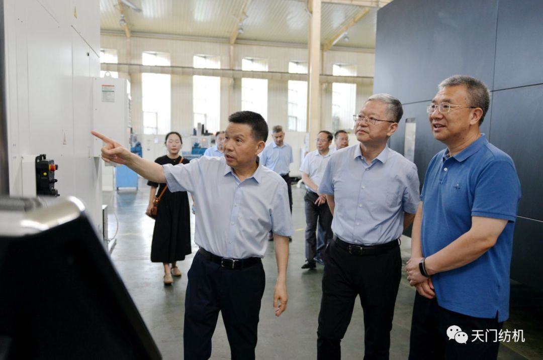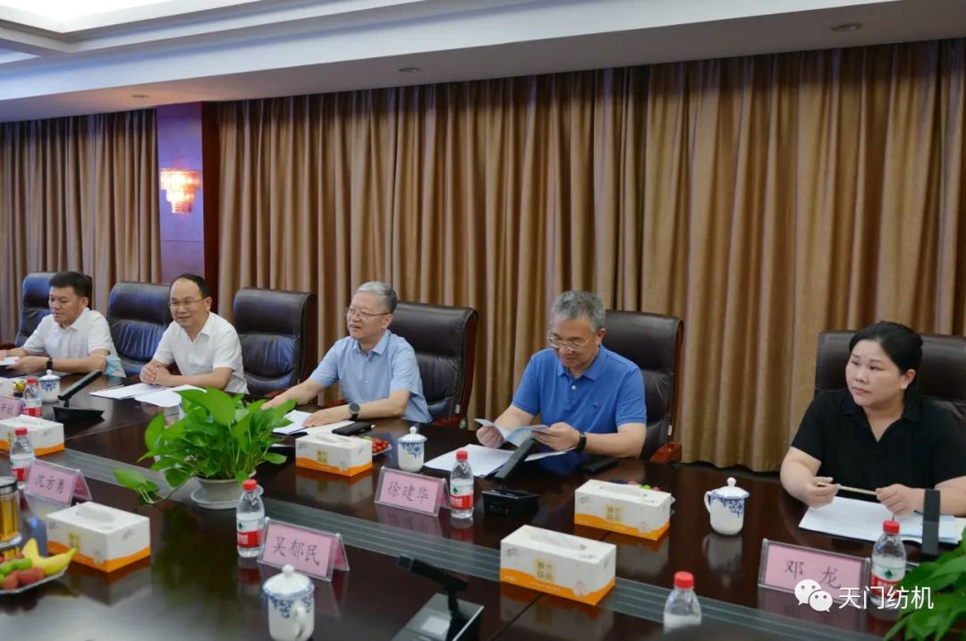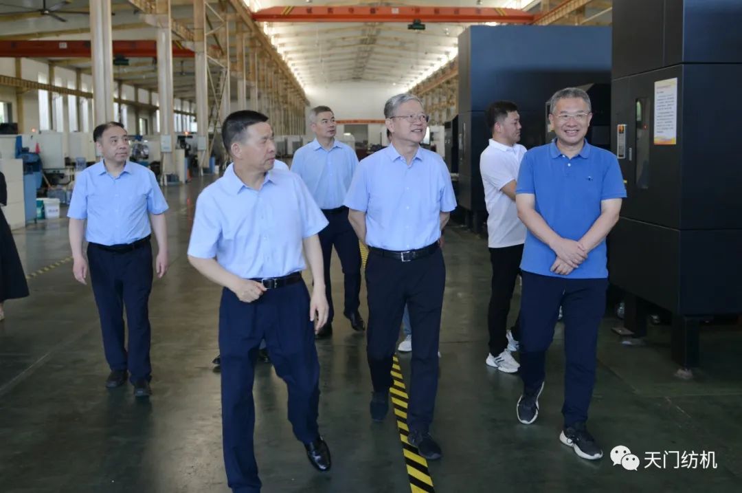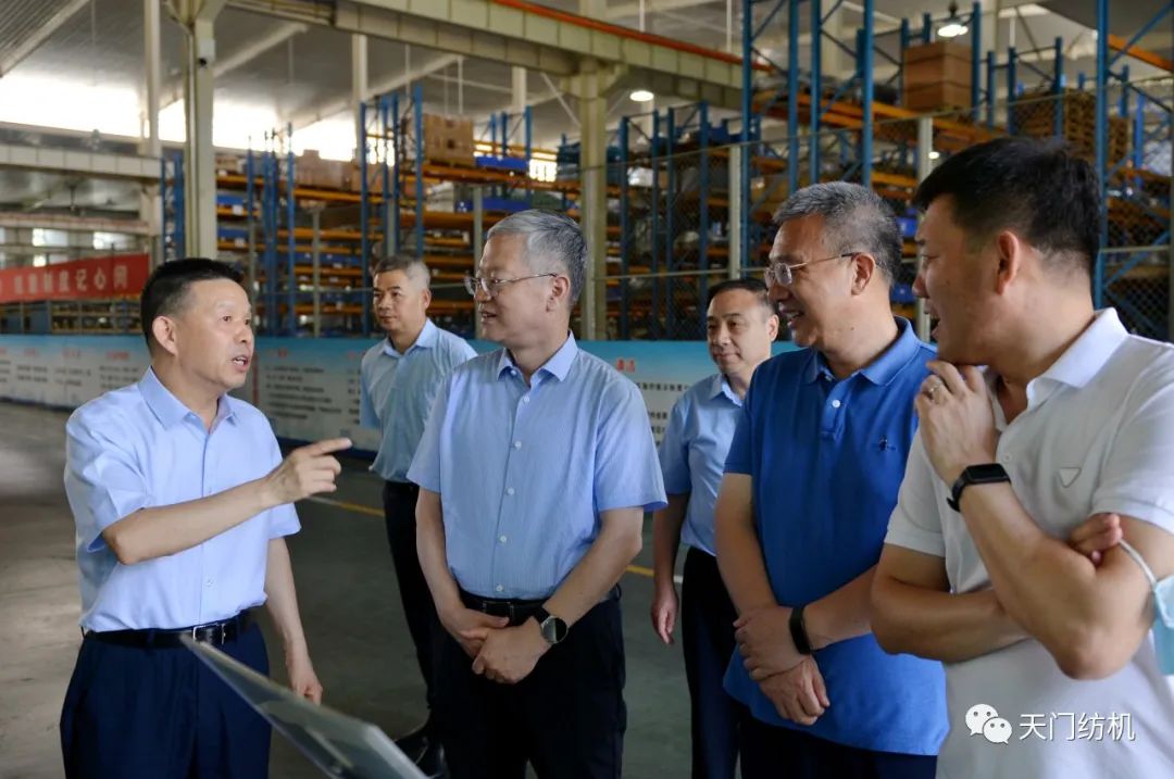 2023年6月27日下午,中國紡織工業(yè)聯合會秘書長夏令敏,中國紡織工業(yè)聯合會流通分會副會長徐建華、秘書長王水元蒞臨天門紡機調研,湖北省經信廳副廳長周開斌、消費品工業(yè)處副處長鄧龍陪同調研。
