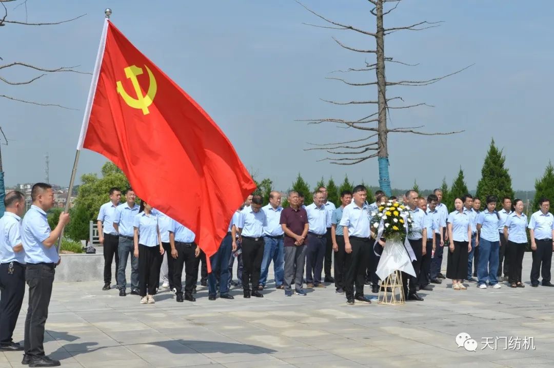 2023年7月1日上午,天門紡機近50名黨員懷著崇高的敬意,來到鐘祥長灘烈士陵園,舉行“慶祝中國共產(chǎn)黨誕辰102周年”主題黨日活動,追憶光輝歲月,緬懷革命先烈,接受精神洗禮。