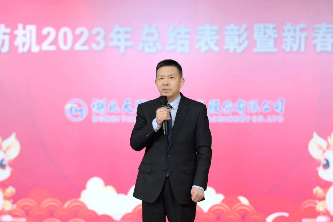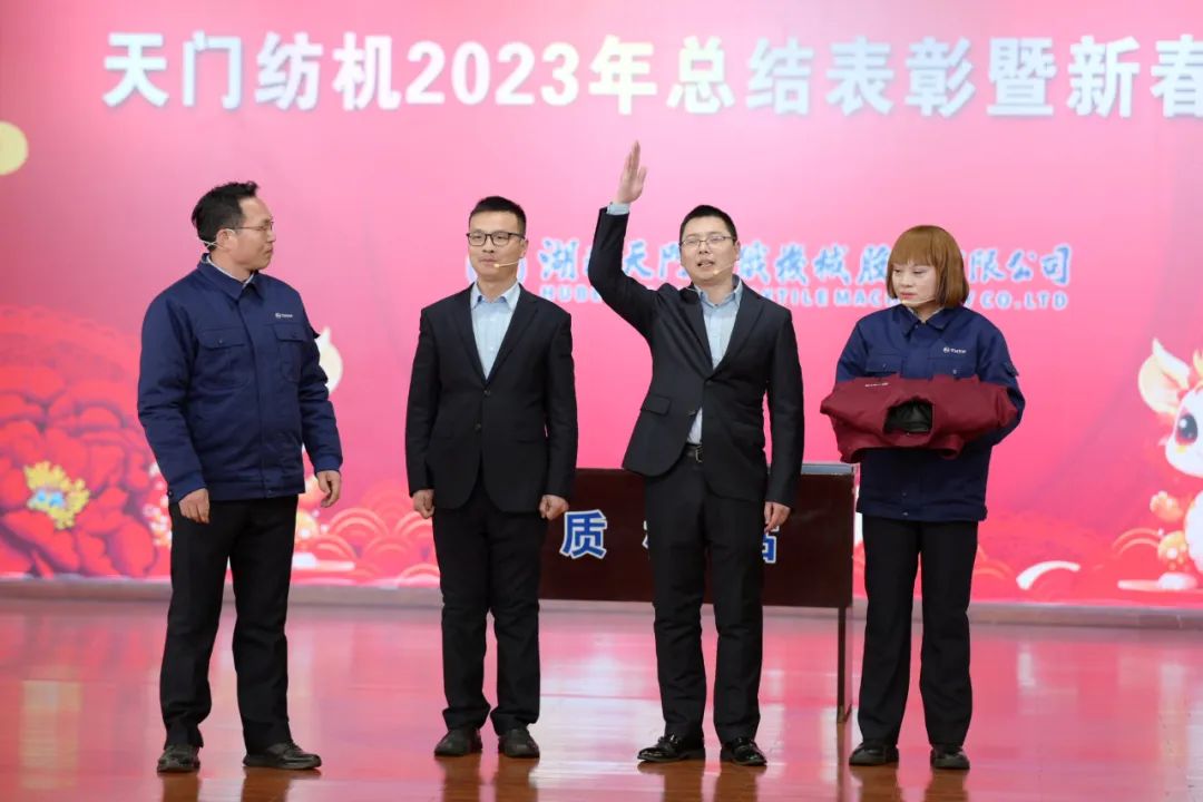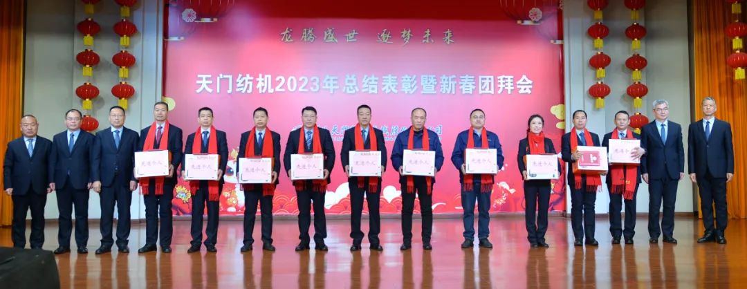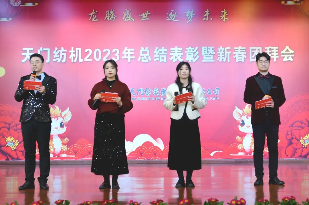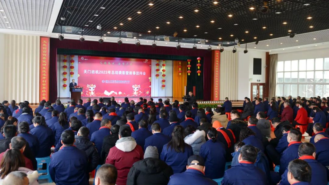 2024年2月6日下午,天門紡機歡歌笑語、喜氣洋洋,公司2023年工作總結(jié)表彰暨新春團拜會在綜合樓多功能廳隆重舉行。