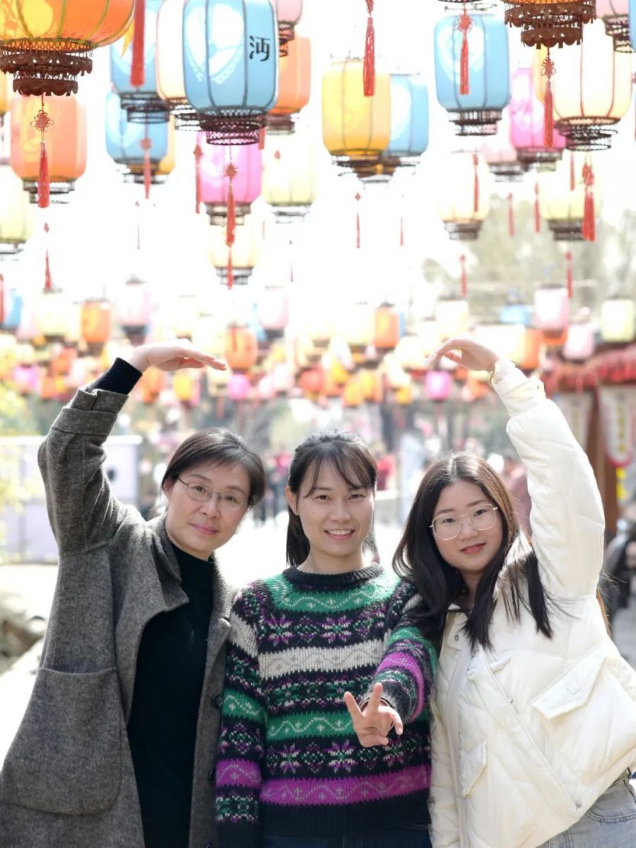 游覽過程中,女工們有的參觀小鎮(zhèn)書院,了解當?shù)氐臍v史文化;有的在小銅人雕塑旁合影留念,定格美好時光;有的登上文昌閣遠眺,感受湖光山色。