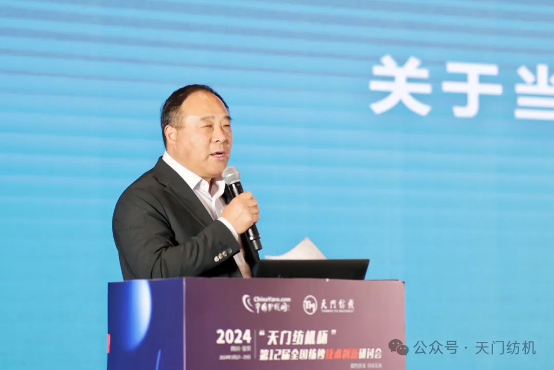 公司焦倫進(jìn)總經(jīng)理介紹了天門紡機(jī)產(chǎn)品開(kāi)發(fā)情況,剖析了行業(yè)形勢(shì)和企業(yè)面臨的機(jī)遇與挑戰(zhàn)。他說(shuō),天門紡機(jī)作為并條機(jī)的專業(yè)生產(chǎn)廠家,不斷加大研發(fā)投入,專注于技術(shù)創(chuàng)新和產(chǎn)品研發(fā),不斷探索新技術(shù),成功研發(fā)并推向市場(chǎng)的TM11、TM13、TM15、TM17系列并條機(jī)已成為行業(yè)主力產(chǎn)品。公司倡導(dǎo)“并條工序全自調(diào)勻整”的理念后,推出了TM19大圈裝高速自調(diào)勻整并條機(jī),并已在多家國(guó)內(nèi)知名紡織企業(yè)推廣應(yīng)用,效果十分明顯。在2023年11月舉行的上海國(guó)際紡機(jī)展覽會(huì)上,公司推出的TM25、TM27、TM29、TM35等四款并條機(jī),因擁有智能在線檢測(cè)、一控多軸多臺(tái)、數(shù)據(jù)管理云平臺(tái)等技術(shù),引起了業(yè)界廣泛關(guān)注,得到了高度評(píng)價(jià);他強(qiáng)調(diào),2024年,紡織行業(yè)仍將處于產(chǎn)業(yè)恢復(fù)期,市場(chǎng)逐漸回暖。同時(shí),紡織行業(yè)正處在朝高端化、智能化、綠色化發(fā)展的轉(zhuǎn)型升級(jí)關(guān)鍵期,市場(chǎng)潛力大,積極向好的發(fā)展趨勢(shì)逐步顯現(xiàn)。因此,2024年將是機(jī)遇與挑戰(zhàn)并存、困難與希望同在的一年。只要我們保持定力,加強(qiáng)交流合作,群策群力,不斷推進(jìn)數(shù)字化轉(zhuǎn)型和智能化改造,加快發(fā)展新質(zhì)生產(chǎn)力,就一定能開(kāi)創(chuàng)更加美好的未來(lái)。