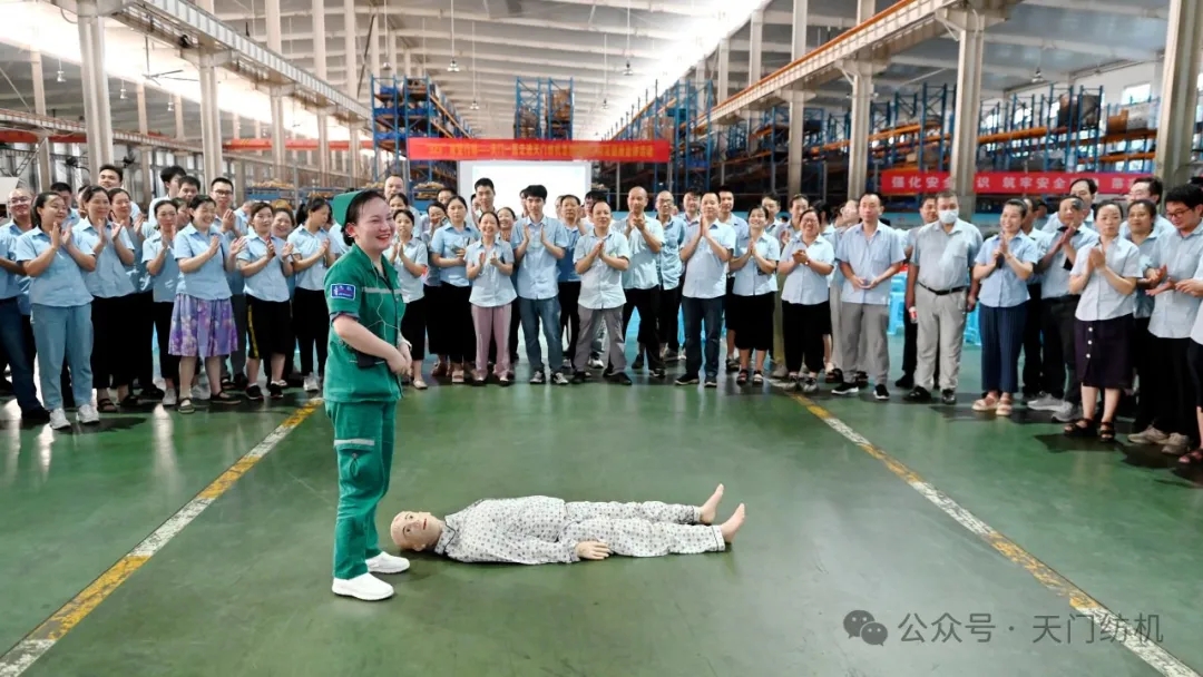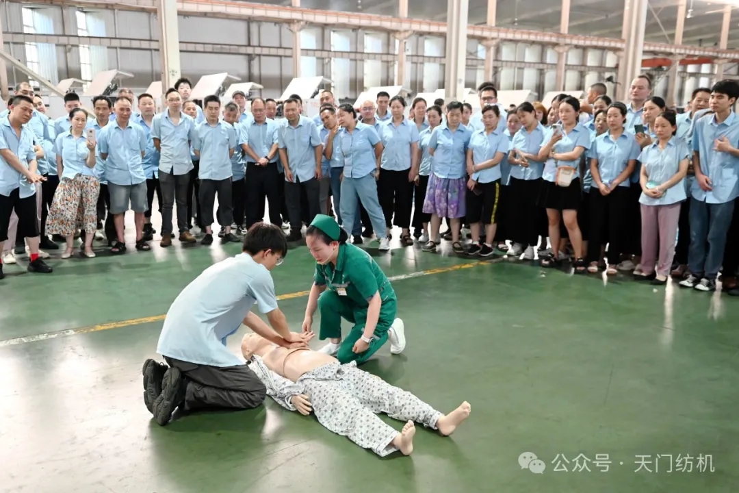 室外赤日炎炎,酷暑難當(dāng);室內(nèi)座無虛席,氣氛熱烈。2024年7月17日下午,天門紡機(jī)在生產(chǎn)現(xiàn)場組織了一場別開生面的健康知識及急救技能培訓(xùn)活動,天門市第一人民醫(yī)院的多位醫(yī)療專家應(yīng)邀來公司進(jìn)行健康知識講座和急救實操演示。
