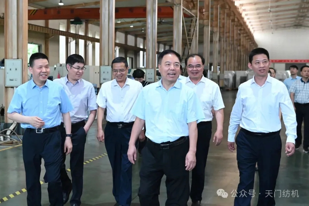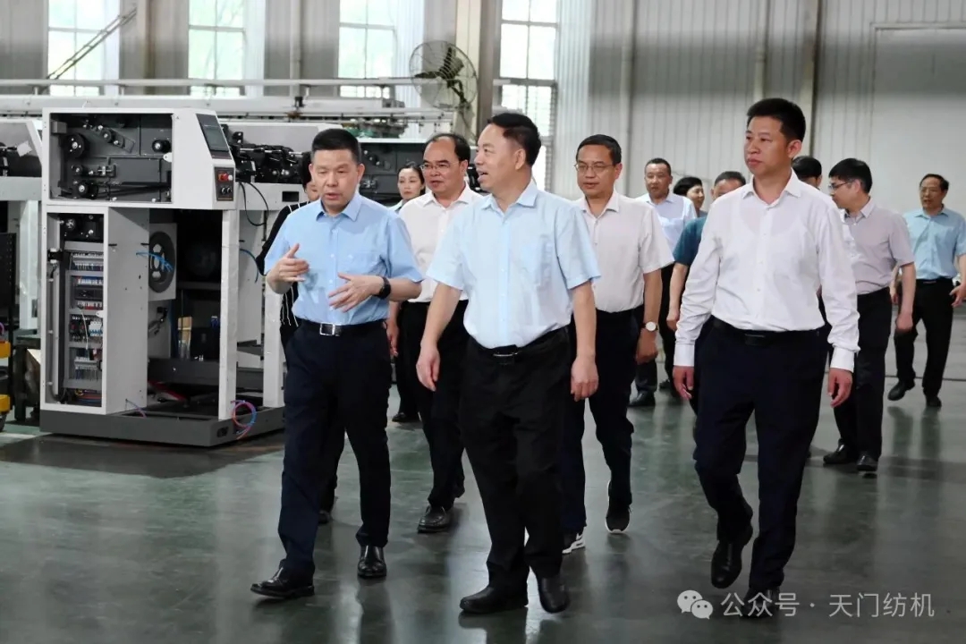 楊云彥主任曾于2022年6月和2024年1月兩次調(diào)研天門紡機,助力企業(yè)發(fā)展。這一次,他依舊深入生產(chǎn)車間,重點考察了天門紡機技術(shù)改造項目,了解企業(yè)發(fā)展情況。公司董事長沈方勇介紹了當前正在推進的智能化改造項目,包括多條柔性自動化產(chǎn)線改造、智能立庫改造及新車間升級改造、中試基地建設(shè)等。