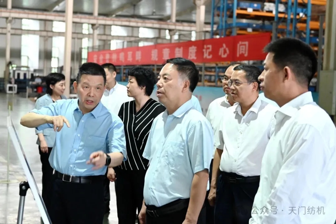 2025年5月22日下午,湖北省人大常委會副主任楊云彥,省人大常委會委員、民宗僑外委主任委員陳亮,省人大常委會副秘書長陳少敏,省人大民宗僑外委專職副主任委員劉玉坤,省人大民宗僑外委辦公室主任彭細元,省人大民宗僑外委辦公室副主任馮吉等一行,深入天門紡機開展專題調(diào)研。天門市委書記、市人大常委會主任紀道清,市人大常委會黨組副書記、副主任蔣勝雄,市人大常委會黨組成員、副主任張文輝,市人大常委會黨組成員、秘書長龔賢俊,市人大常委會教僑工委主任陳新華、侯口街道辦事處黨工委書記劉娟等領(lǐng)導(dǎo)陪同調(diào)研。天門紡機董事長沈方勇全程接待,匯報工作。