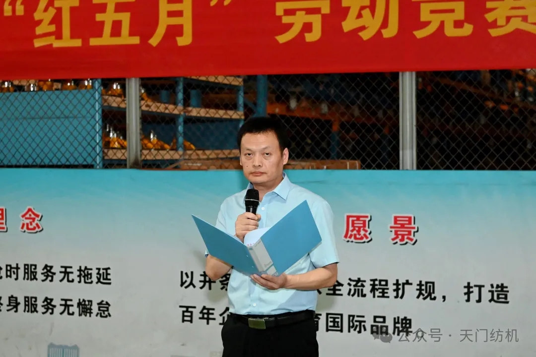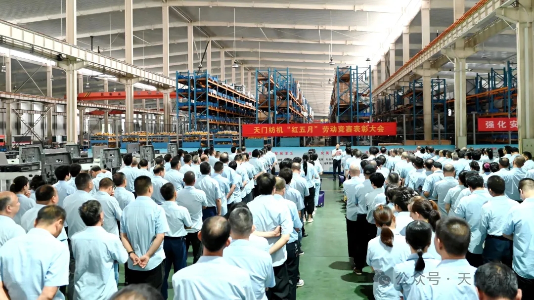 晨光微熹,映照勞動(dòng)者的身影。2025年6月27日早上8:00,天門紡機(jī)全體員工齊聚總裝配區(qū),舉行“紅五月”勞動(dòng)競賽表彰大會(huì),禮贊拼搏者,致敬奮斗人!