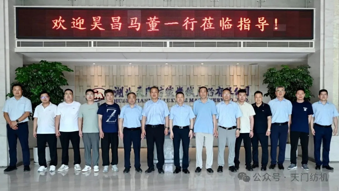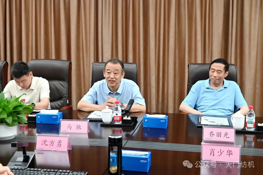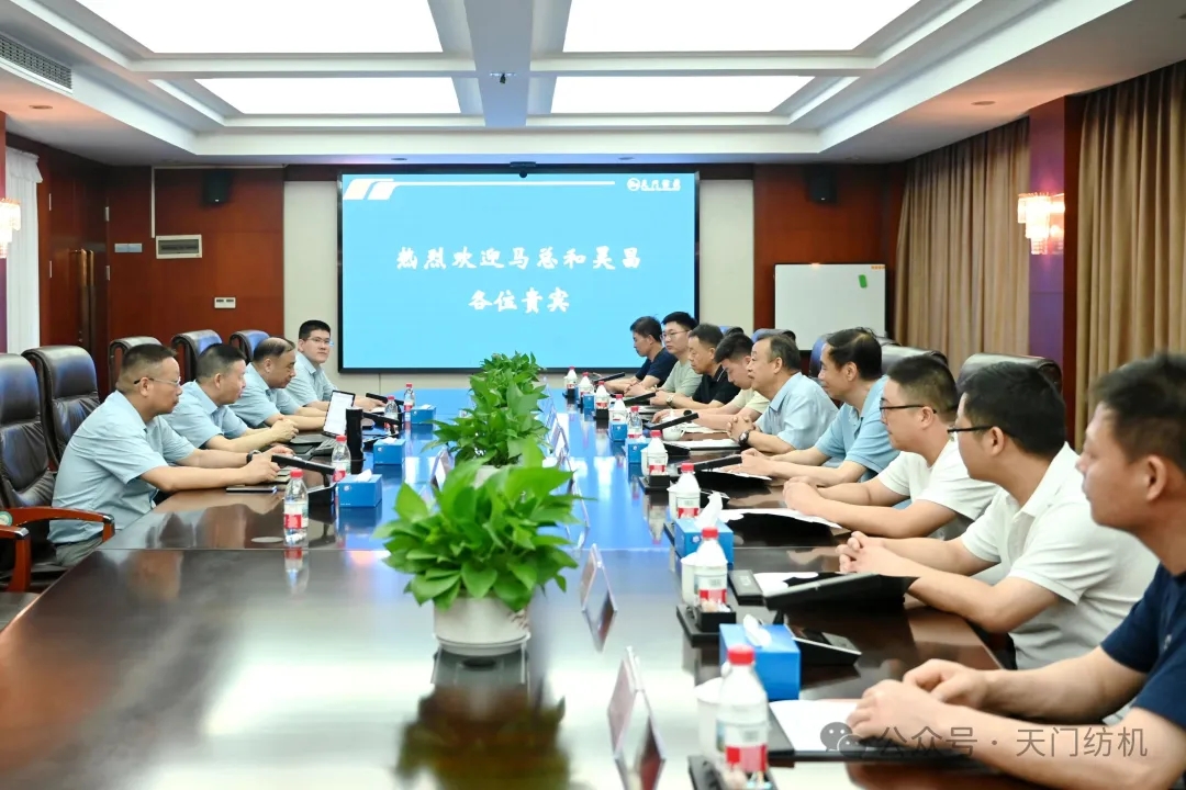 2025年6月30日上午,河南昊昌精梳機(jī)械股份有限公司董事長(zhǎng)馬馳率高管及中層干部一行9人蒞臨天門(mén)紡機(jī),傳經(jīng)送寶。公司董事長(zhǎng)沈方勇率隊(duì)熱情接待到訪客人,雙方圍繞企業(yè)發(fā)展進(jìn)行了深入交流。