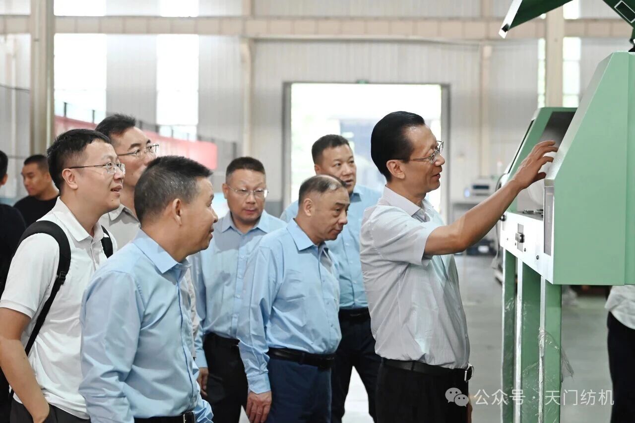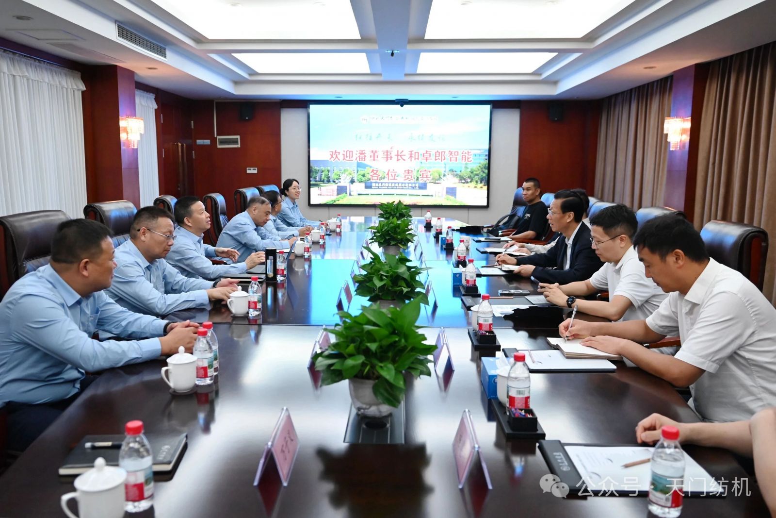 2025年9月27日,卓郎智能技術(shù)股份有限公司董事長(zhǎng)潘雪平一行7人蒞臨天門(mén)紡機(jī)參觀交流,公司董事長(zhǎng)沈方勇予以熱情接待。雙方圍繞紡織行業(yè)發(fā)展形勢(shì)及合作項(xiàng)目等議題進(jìn)行了深入交流。